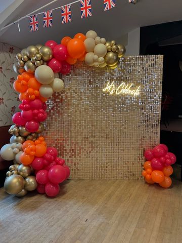 Prices for Two Columns with balloons either side of the shimmer wall start from £300