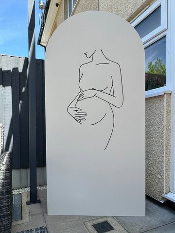 A 1900 x 915mm sailboard painted in cream, with a gorgeous pregnancy sticker. Ideal for baby showers and gender reveals.
